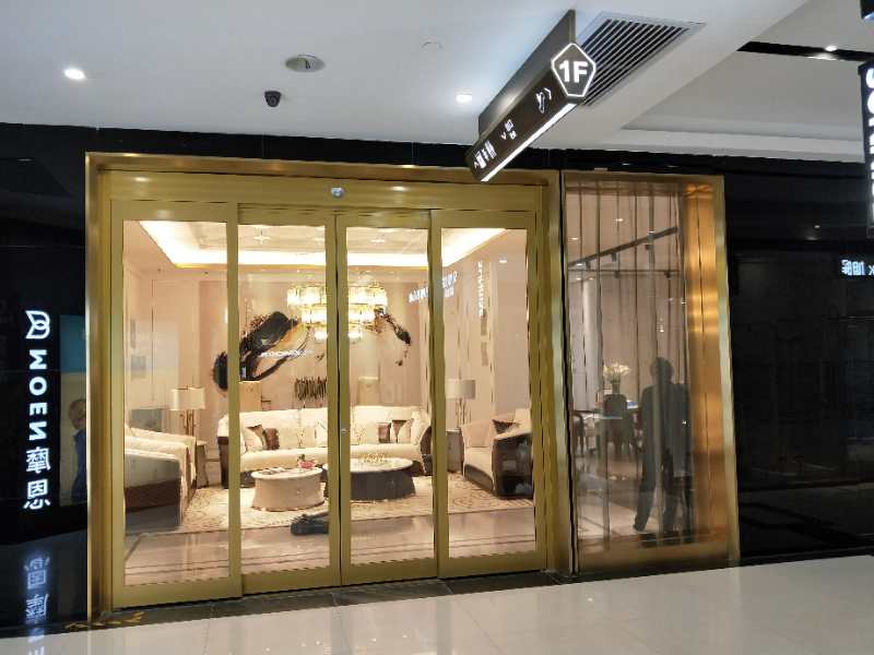 酒店选择两翼。三翼。四翼豪华系列自动旋转门作为主门体(豪华系列旋转门,外直径/3600mm,并增加展示箱)。当门体直径在3600mm以上时,门体本身较重,展示箱本身具有分担和承受门体重量的作用,有利于大门体的运行;同时,展示箱内部空间可放置精美配件,装饰门体。